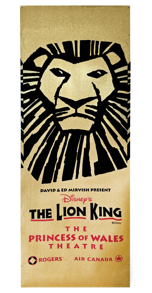 The original Toronto production of Disney’s The Lion King premiered on April 25, 2000, at the Princess of Wales Theatre. While the production was presented by David and Ed Mirvish, posters from this specific 2000-2004 run are now considered vintage collectibles and are primarily found through secondary marketplace